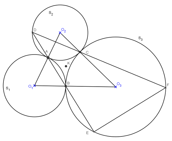 Legyen az \(\displaystyle S_1\), \(\displaystyle S_2\) és \(\displaystyle S_3\) körök középpontja \(\displaystyle O_1\), \(\displaystyle O_2\) és \(\displaystyle O_3\).