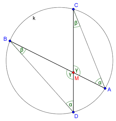 Átszorozva: \(\displaystyle AM\cdot BM=CM\cdot DM\).