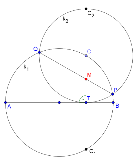 majd a \(\displaystyle k_2\) körben a \(\displaystyle PQ\) és \(\displaystyle TC_2\) húrokra: