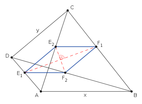 \(\displaystyle E_1F_2 = \frac{y}{x+y}\cdot AB = \frac{y}{x+y}\cdot x = \frac{xy}{x+y}.\)