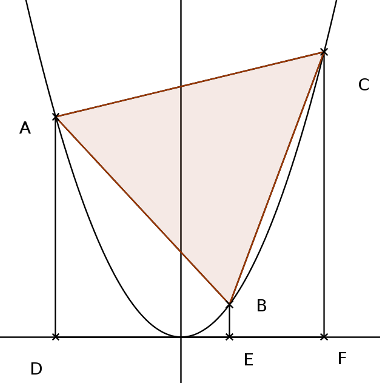 Megoldás. A lineáris és a konstans függvények nyilván ilyenek (elfajuló háromszögekkel és csupa \(\displaystyle 0\) területtel). Megmutatjuk, hogy az \(\displaystyle f(x)=x^2\) függvény is területtartó (terület-eltolás-invariáns, a továbbiakban TEI).