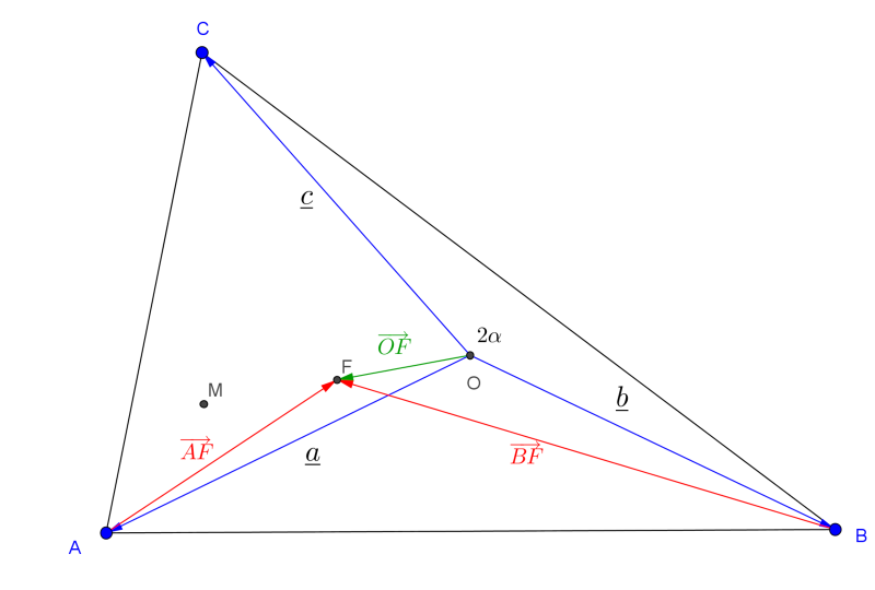 \(\displaystyle \overrightarrow{OF}=\frac{1}{2}(\mathbf{a}+\mathbf{b}+\mathbf{c}).\)