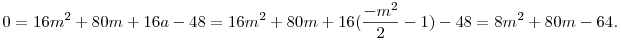 A második parabola: 4y=x2-10x+37. Most a 0=x2-(10+4m)x+(37-4a) egyenlet diszkriminánsa kell, hogy 0 legyen: