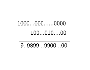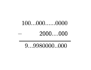 A \(\displaystyle 10^{2m}\) szám végén \(\displaystyle 2m\) darab 0 áll, a \(\displaystyle 2\cdot10^m\) végén pedig \(\displaystyle m\) darab, így kivonva őket egymásból: