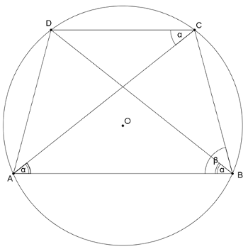 C. 1334. Bizonyítsuk be, hogy ha az \(\displaystyle ABCD\) húrnégyszög trapéz (ahol \(\displaystyle AB\parallel CD\)) vagy az \(\displaystyle AB\) oldala a köréírt kör átmérője, akkor teljesülnek a