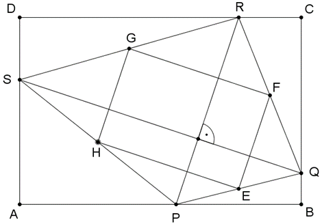 Mivel \(\displaystyle PR\perp SQ\), ezért \(\displaystyle EF\perp FG\), tehát az \(\displaystyle EFGH\) négyszög valóban téglalap.