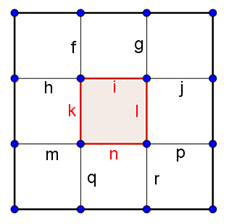 A.) Az \(\displaystyle i,k,n,l\) rácsszakaszok kiválasztásával. Ebből csak \(\displaystyle 1\) eset lehetséges.