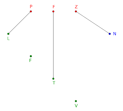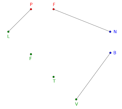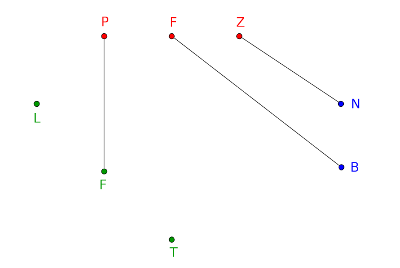 Ha szín marad ki, az háromféleképpen történhet. Ha a maradék színek valamelyikét egy szereplővel kötnénk össze (pl. \(\displaystyle FN\), 3. ábra), akkor az elemek közül kettőnek nem tudnánk párt találni.
