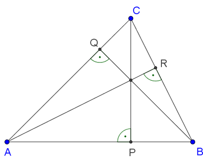 pontosan akkor igaz, ha az \(\displaystyle AR\), \(\displaystyle BQ\) és \(\displaystyle CP\) egyenesek egy pontban metszik egymást.