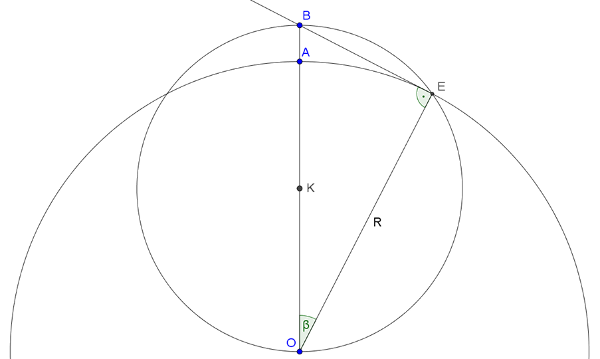 Megjegyzés. Ilyen kis szögeknél \(\displaystyle β≈sinβ\), ezért \(\displaystyle \widehat{AE}≈BE\). A \(\displaystyle BE\) szakasz hosszát Pitagorasz-tétellel is számolhatjuk: