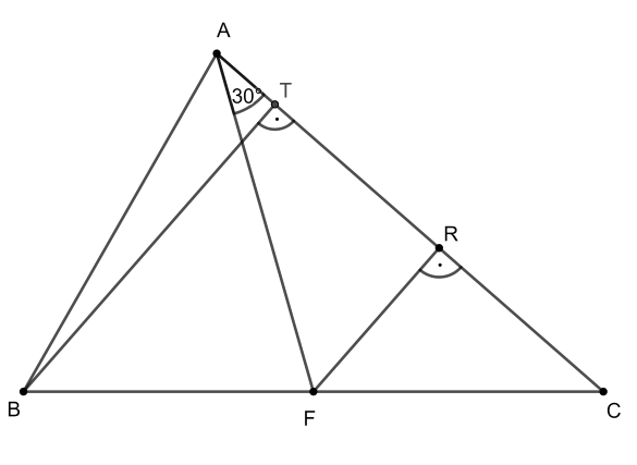 C. 1626. Az \(\displaystyle ABC\) hegyesszögű háromszög \(\displaystyle BC\) oldalának felezőpontja legyen \(\displaystyle F\), a \(\displaystyle B\)-ből induló magasságvonal talppontja pedig \(\displaystyle T\). Bizonyítsuk be, hogy ha \(\displaystyle FAC\sphericalangle=30^{\circ}\), akkor \(\displaystyle AF=BT\).