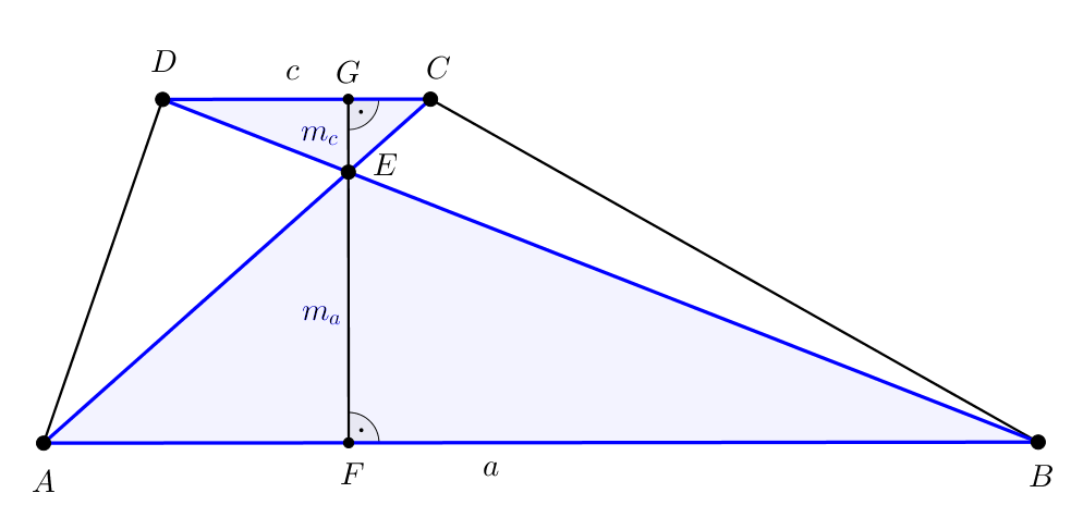 | \(\displaystyle (1)\) | \(\displaystyle T_{ABE}=\frac{a\cdot{m_{a}}}{2};\qquad{T_{CDE}=\frac{c\cdot{m_{c}}}{2}},\) |