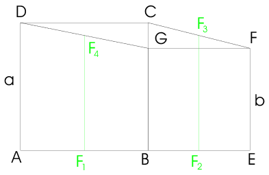 F1F2=F1B+BF2=a/2+b/2, tehát F1F2F3F4 négyzet. Így területe: