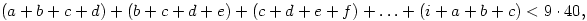 4.(a+b+c+d+e+f+g+h+i)<360,