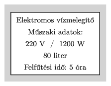 G. 682. Egy régi vízmelegítő bojleren a mellékelt adatokat tartalmazó címke található: