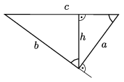 Ha ezt a háromszöget megforgatjuk a vízszintes \(\displaystyle c\) átfogó körül, akkor a derékszögű csúcs adja meg a földrengés központjának a lehetséges helyét. A rengés centruma akkor van a legmélyebben, ha ennek a derékszögű háromszögnek a síkja függőleges. A háromszög átfogóhoz tartozó magassága adja meg a keresett maximális \(\displaystyle h\) mélységet. Hasonló háromszögek alapján