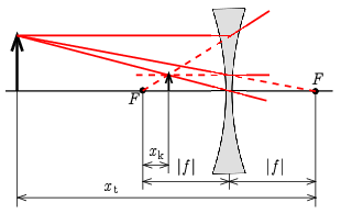 \(\displaystyle \frac{1}{x_\mathrm{t}+f}+\frac{1}{x_\mathrm{k}+f}=\frac{1}{f}.\)