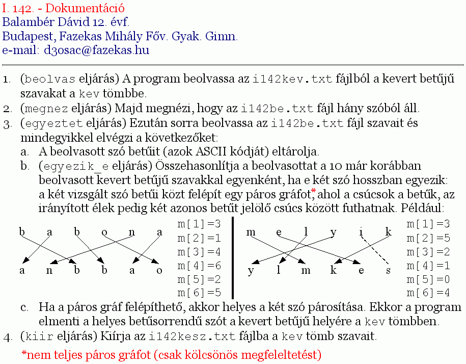 Készítsünk programot, amelyik megállapítja az I142kev.txt-ben levő betűk eredeti sorrendjét. A végeredményt (az eredeti szavakat) az I142kesz.txt fájlban tároljuk, szintén szóközökkel tagolva. Mivel a fájlnevek előre meghatározottak, így a program paramétereket nem kezel. A fájlokat a programmal azonos könyvtárból olvassuk, az eredményt pedig ugyanoda írjuk.