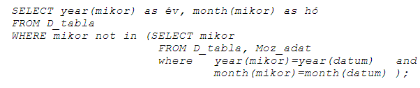 A D_tabla a megadott időszak minden évét és hónapját tartalmazza a mikor mezőben.