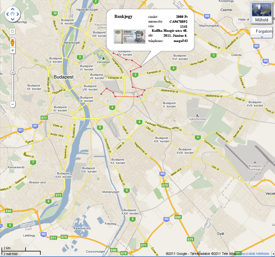 -- Terv (és minta) arra nézve, hogy hogyan jeleníthető meg grafikusan a bankjegy útja annak 100 felbukkanását követően.