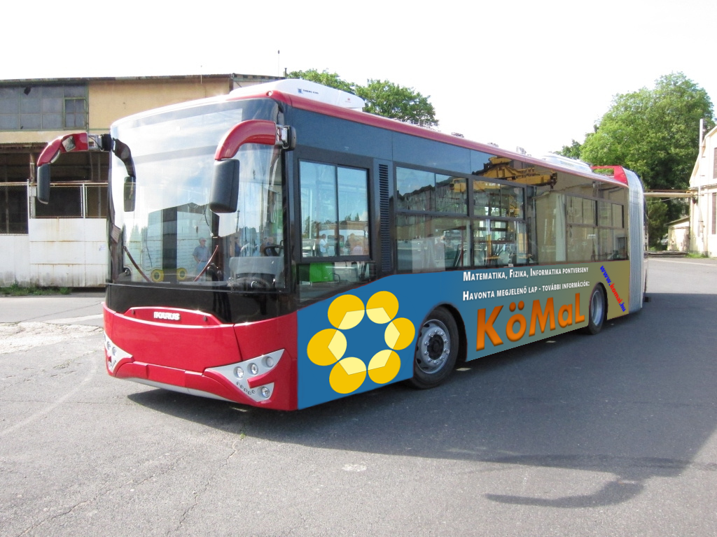 Csatlakozzunk mi is ehhez a sorhoz és tervezzünk egy KöMaL reklámot, amelyet akár tömegközlekedési eszközök oldalán is el lehet helyezni. A terv minél valósághűbb bemutatására a reklámot helyezzük el a troli.jpg kép oldalára. (A kép forrása: http://iho.hu/img/galery/130523-iktroli.jpg.)