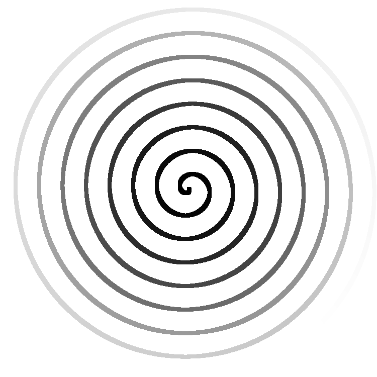 Készítsünk programot i456 néven, amely egy .pgm kiterjesztésű (portable graymap format), 8-bites, szürkeárnyalatos képet állít elő, amely egy arkhimédészi spirált ábrázol. A kép négyzet alakú legyen és a spirál középen helyezkedjen el. A hátteret állítsuk fehérre és a spirál színét, belülről kifelé, menetenként feketétől fokozatosan a világosszürkéig változtassuk.