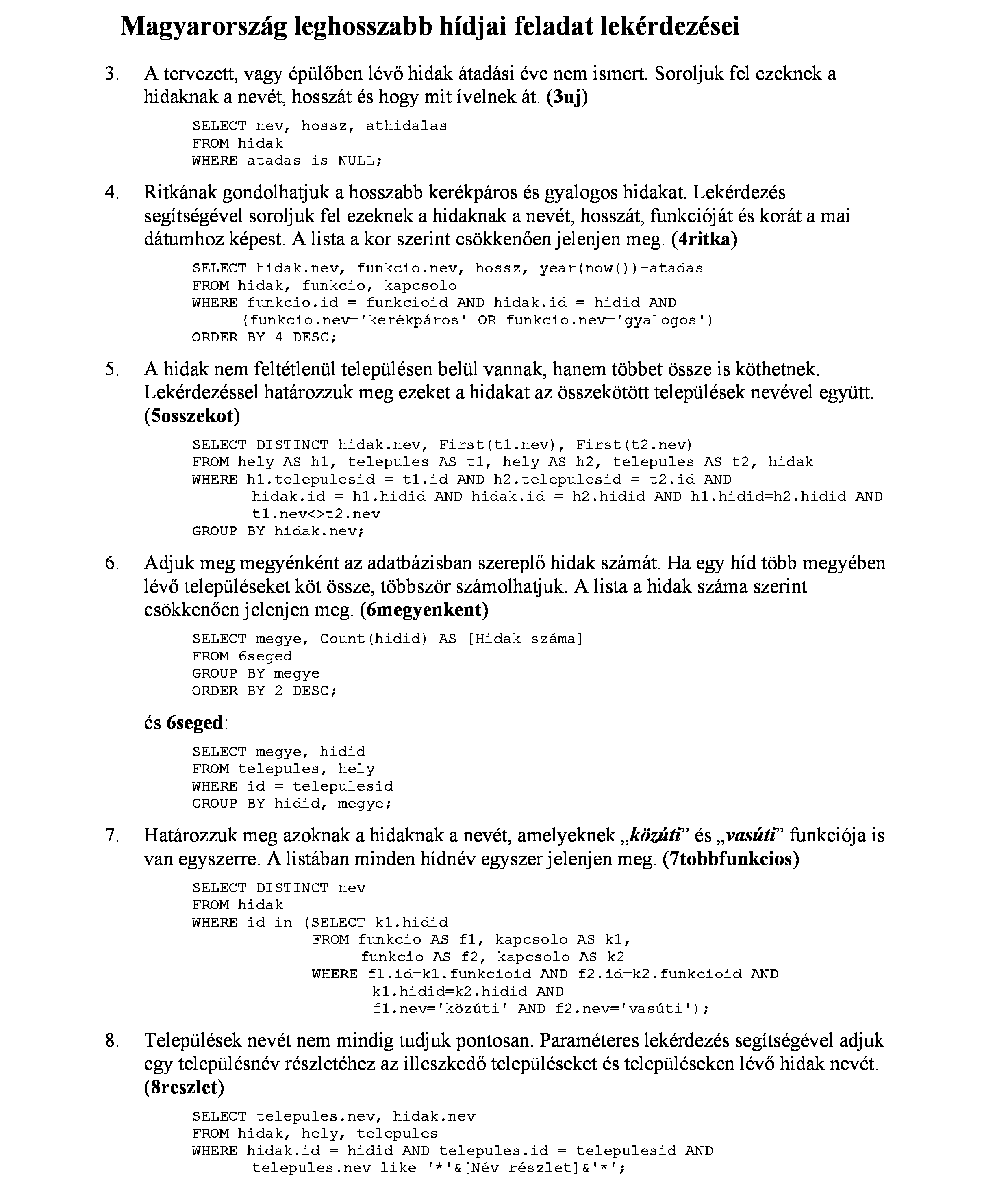 Letölthető fájlok: hidak.txt, kapcsolo.txt, funkcio.txt, hely.txt, telepules.txt.