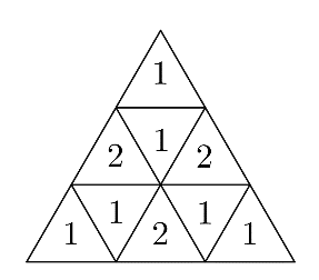 Megoldás. Töltsük ki a kis háromszögeket az 1-es és 2-es számokkal a következőképpen: