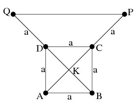\(\displaystyle a)\) Tudjuk, hogy \(\displaystyle AC=\sqrt 2 a\), ezért \(\displaystyle KP= \left (\frac{\sqrt 2}{2} + 1 \right )a\). Mivel \(\displaystyle KPQ\) egyenlőszárú derékszögű háromszög, ezért \(\displaystyle QP=\sqrt 2 \left( \frac{\sqrt 2}{2} + 1\right)a = (\sqrt 2 +1)a\). Tudjuk, hogy \(\displaystyle a=\sqrt 2 -1\), így a keresett távolság: \(\displaystyle QP= (\sqrt 2 +1)(\sqrt 2 -1)=1\).