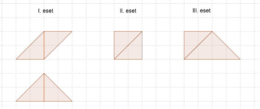 III. Az átló egyiknek befogója, másiknak átfogója. Ez pedig egy derékszögű trapézt.