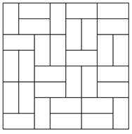 K. 508. Bergengóciában egyre többször reng a föld, sok ház fala megrepedezett, néhány össze is dőlt. Összeült a vének tanácsa, és tanácskozni kezdtek a házépítés, a téglarakás megreformálásáról. Az az általános vélekedés alakult ki, hogy az a jó, földrengésbiztos téglafal, amelyikben sem függőleges, sem vízszintes téglaszél menti egyenes nincs. A tégla \(\displaystyle 1 \times 2\)-es méretű.