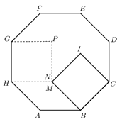 K. 661. Az \(\displaystyle ABCDEFGH\) szabályos nyolcszög 2 egység hosszú \(\displaystyle BC\) és \(\displaystyle GH\) oldalára a \(\displaystyle BCIM\) és a \(\displaystyle GHNP\) négyzetet rajzoljuk befelé. Igazoljuk, hogy az \(\displaystyle N\) és \(\displaystyle M\) pontok egybeesnek.