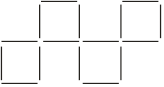 K. 864. Az alábbi elrendezést gyufákból készítettük. Legkevesebb hány gyufát kell áthelyeznünk ahhoz, hogy az öt egybevágó négyzet helyett csak négy, az eredetiekkel egybevágó legyen látható az új elrendezésben? (A négyzetlapok nem fedhetik át egymást, csak oldaluk vagy csúcsuk lehet közös, és befejezetlen négyzetet sem alakíthatunk ki.)