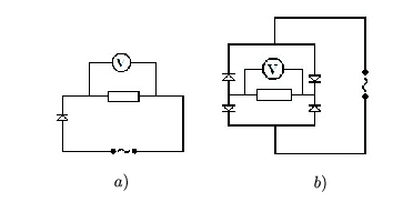 \(\displaystyle a)\) Milyen kapcsolást állítsunk össze az ,,egyutas'' egyenirányításhoz?