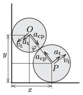 \(\displaystyle a_x=2R(\beta \cos\varphi-\omega^2 \sin\varphi), \qquad a_y=-2R (\beta\sin\varphi+\omega^2\cos\varphi).\)