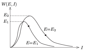 \(\displaystyle b)\) Ábrázoljuk vázlatosan a \(\displaystyle W(E,I)\) függvényt rögzített \(\displaystyle I_0\) impulzus, illetve rögzített \(\displaystyle E_0\) energia esetén!