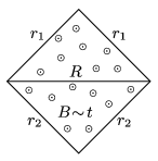 P. 4957. The sides of a square-shaped frame, shown in the figure are made of wires of resistances \(\displaystyle r_1\) and \(\displaystyle r_2\). The frame is in uniform magnetic field, which is perpendicular to the plane of the figure and is increasing at a constant rate. What should the resistance \(\displaystyle R\) of the wire connected across the diagonal of the frame be, in order that this wire is warmed up at the greatest rate?
