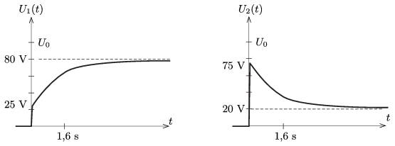 \(\displaystyle U_1(t)=80-55\, e^{-\frac{t}{1{,}6}},\)