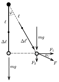 \(\displaystyle F_1=F\sin\varphi=\left(mg+D\ell(1-\cos\varphi)\right)\tg\varphi=2{,}65~\rm N,\)