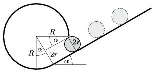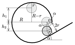 \(\displaystyle h_2=\frac {1+\sin\alpha}{\cos\alpha}r\approx 0{,}14~\rm m,\)