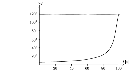 \(\displaystyle 2\varphi\approx\frac{8}{100-t}~\text{radián}=\frac{4{,}6^\circ}{1-0{,}01\,t},\)