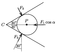 \(\displaystyle 2F_3\,\sin30^\circ=F_3=F_1\cos\alpha,\)