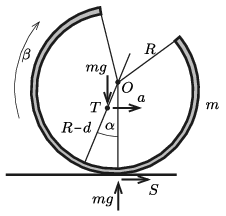 \(\displaystyle \Theta_T\beta=-mgd\sin\alpha-S(R-d\cos\alpha),\)