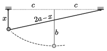 \(\displaystyle a)\) Kezdetben az acélgolyó a nagytengely alatt, attól \(\displaystyle x \) távolságra van. Az ábrán látható derékszögű háromszögre felírt Pitagorasz-tételből leolvashatjuk, hogy