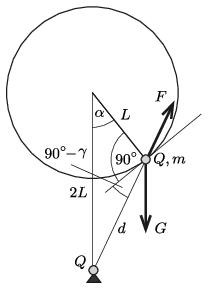 | \(\displaystyle (5)\) | \(\displaystyle mg\cdot\sin\alpha=k\frac{2Q^2L}{d^3}\cdot\sin\alpha.\) |