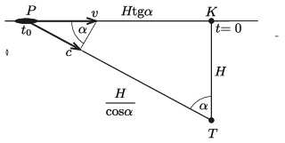 \(\displaystyle t_0=-\frac{H}{v}\tg\alpha\)