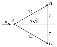 \(\displaystyle T_B=T_C=\frac{\sqrt{53}}{v}\ctg\alpha-\frac{ 7\sqrt{3}}{v} \)