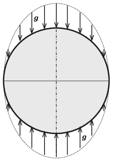 A testre ható nehézségi erő \(\displaystyle -\boldsymbol G\), a \(\displaystyle \boldsymbol g=-\boldsymbol G/m\) vektor pedig nehézségi gyorsulás ezen a bolygón. A nehézségi gyorsulás komponensei: