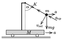 \(\displaystyle K-mg\cos\alpha=m\left(a_\text{cp}-a\sin\alpha\right),\)