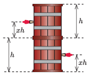 P. 5519. Dionüszosz vízszintes talajon elhelyezett egymás tetején \(\displaystyle 2\) egyforma, \(\displaystyle h\) magasságú, egyenes henger alakú, borral közel teletöltött hordót. Héraklész tizenharmadik próbájaként azt a feladatot kapja, hogy fúrjon a hordók falára merőlegesen egy-egy lyukat az alsó, illetve a felső hordóba, az adott hordó aljától mért ugyanakkora \(\displaystyle xh\) magasságban.